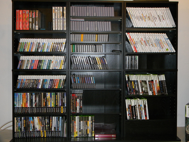 I had my camera downstairs taking pictures of the snow in the window wells and I figured I’d take a picture of all my games. If you look carefully you’ll see that one game is out of place.